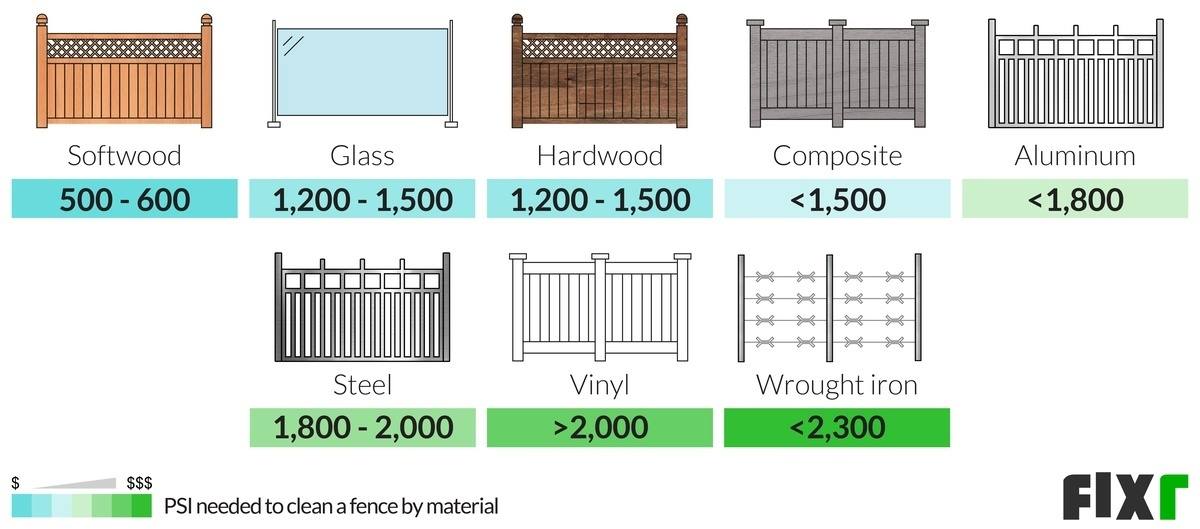 Pressure Washing PSI Levels By Fencing Material