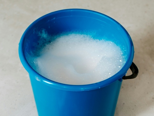 - Prep Your Cleaning Solution – Fill a bucket with warm water and add dish soap or white vinegar. Both are gentle, eco-friendly cleaners that help loosen grime without damaging the vinyl.